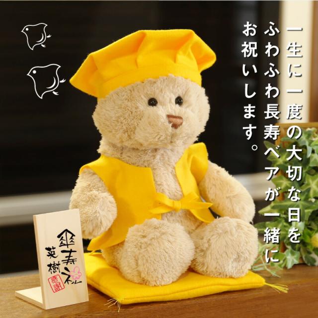 テディベア 傘寿 米寿 お祝い 長寿ベア 黄 翌々営業日出荷 黄色 ちゃんちゃんこ 誕生日 くま ぬいぐるみ メッセージ長寿祝い 古希祝い 傘寿祝い 米寿祝い かわいい 癒し 木札 贈り物 プレゼント 名入れ ギフト
