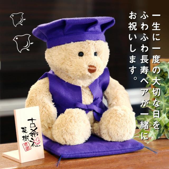 テディベア 古希 喜寿 卒寿 お祝い 長寿ベア 紫 翌々営業日出荷 紫色 ちゃんちゃんこ 誕生日 くま ぬいぐるみ メッセージ長寿祝い 古希祝い 喜寿祝い 卒寿祝い プレゼント 名入れ ギフト