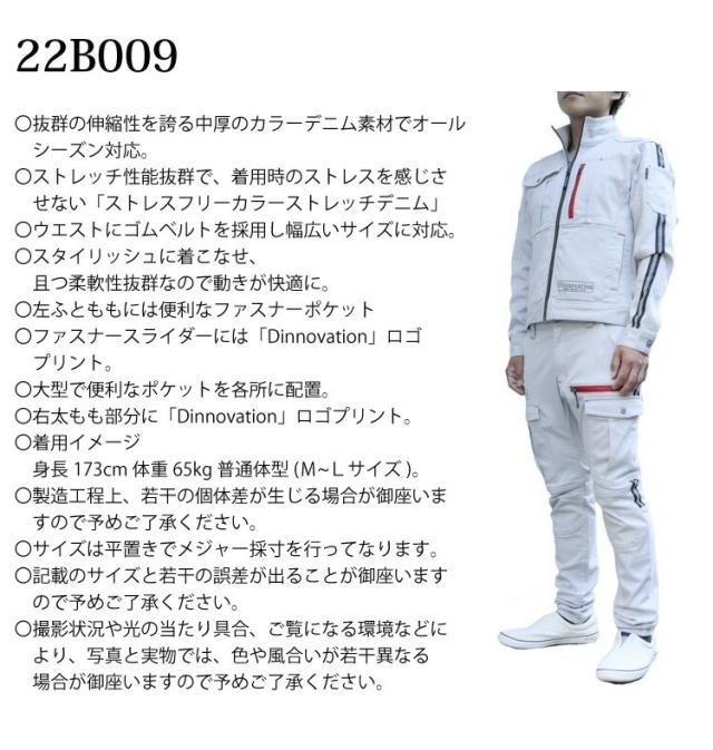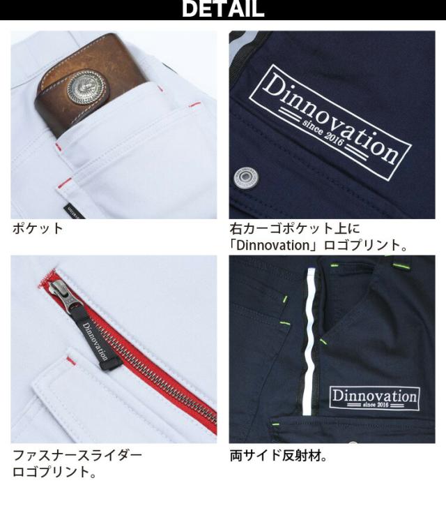 Dinnovation ストレッチリボーンパンツ 22B009 中厚デニム ロゴ入り 反射 作業着 作業服 2022年新商品 通年 オールシーズン メンズ ディノベーション