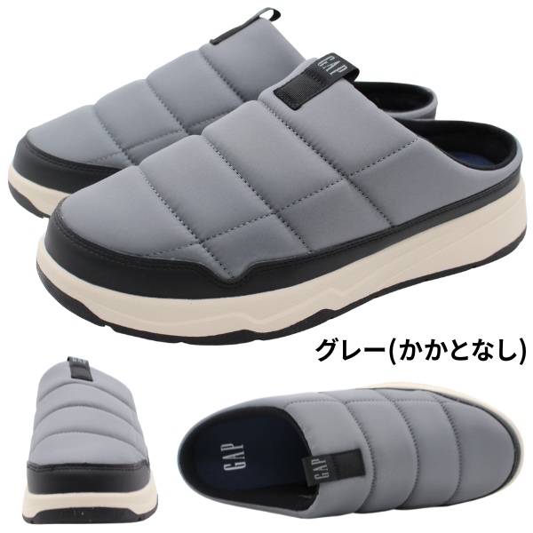 ギャップ スリッポン メンズ 靴 ルームシューズ モックシューズ サンダル スリッパ 黒 ブラック 灰色 グレー 軽量 軽い 撥水 ダウン かかとが踏める 滑りにくい 歩きやすい 冬 室内履き 仕事 オフィス おしゃれ アウトドア キャンプ GAP GPU22549