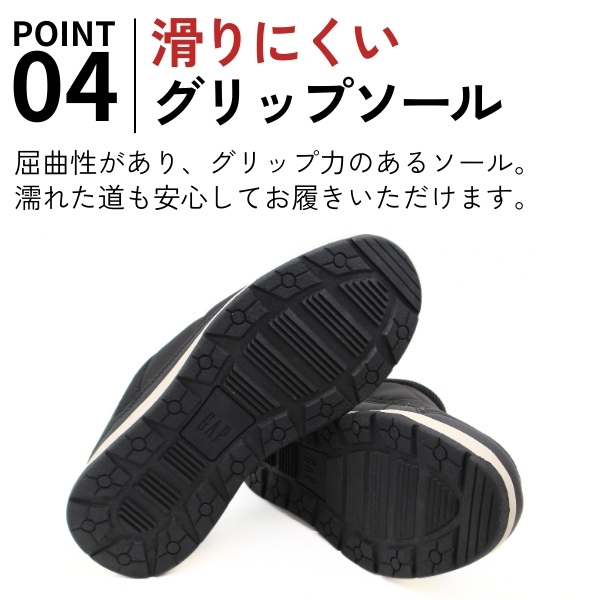 屈曲性があり、グリップ力のあるソール。濡れた道も安心してお履きいただけます。