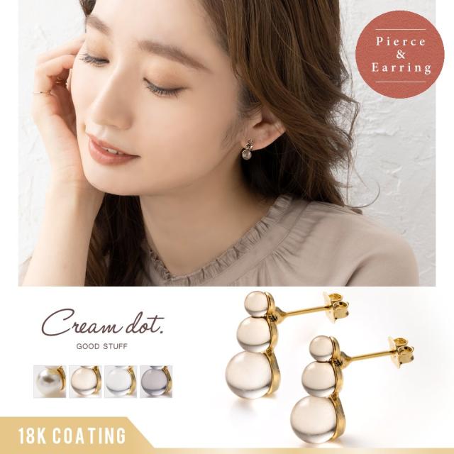 大きさの異なるクリアボールを3つ並べたピアス/イヤリング。雪だるまのような可愛らしいフォルムがありそうでないデザイン◎ゴールドの台座がより一層輝きを高めてくれます。コーデのアクセントにオススメです。
