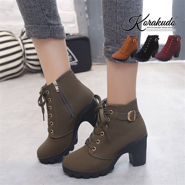 ショートブーツ レディース 太ヒール ブーツ ヒールブーツ 韓国 ミドルブーツ 秋冬 ベルト 美脚 シューズ おしゃれ ハーフブーツ 履きやすい チャンキーヒール ブーティ 痛くない