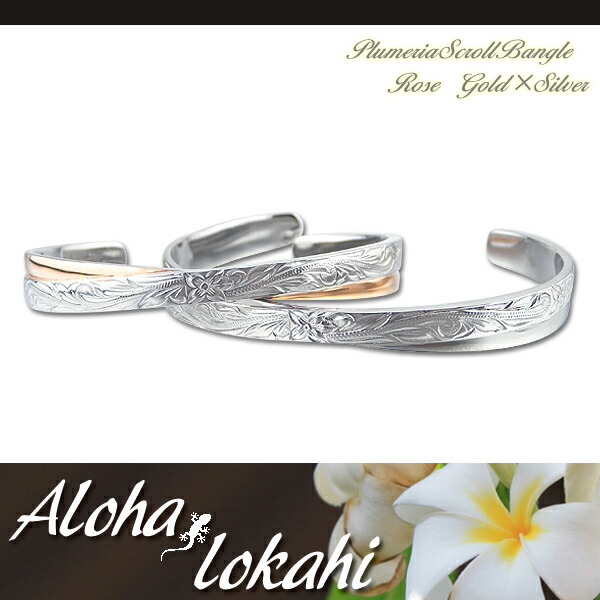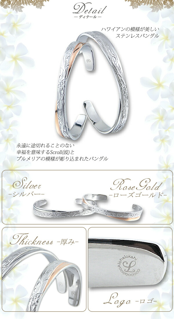 | 商品名 | ハワイアンジュエリー ハワイアン ペアバングル ステンレス サージカルステンレス 刻印無料 プルメリア スクロール |