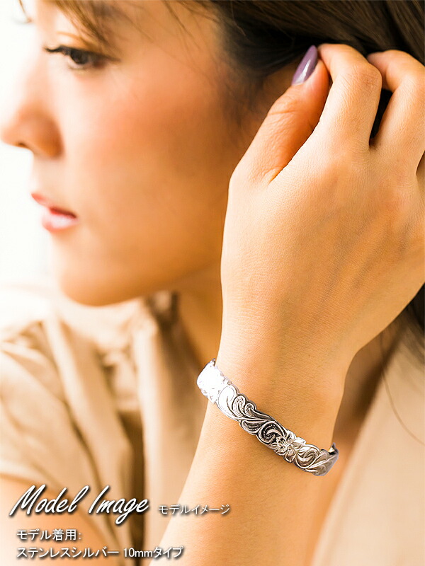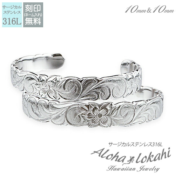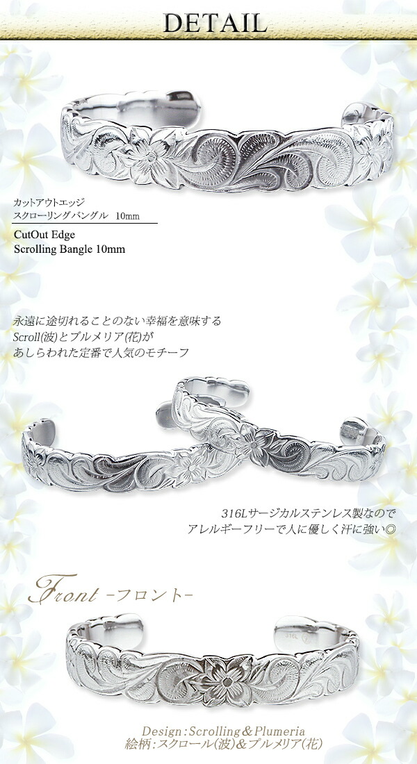 | 商品名 | ハワイアンジュエリー ハワイアン ペアバングル ステンレス サージカルステンレス 刻印無料 プルメリア スクロール |