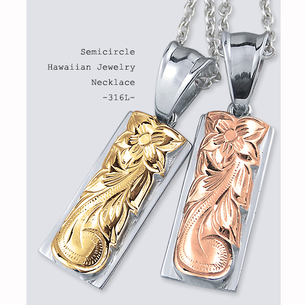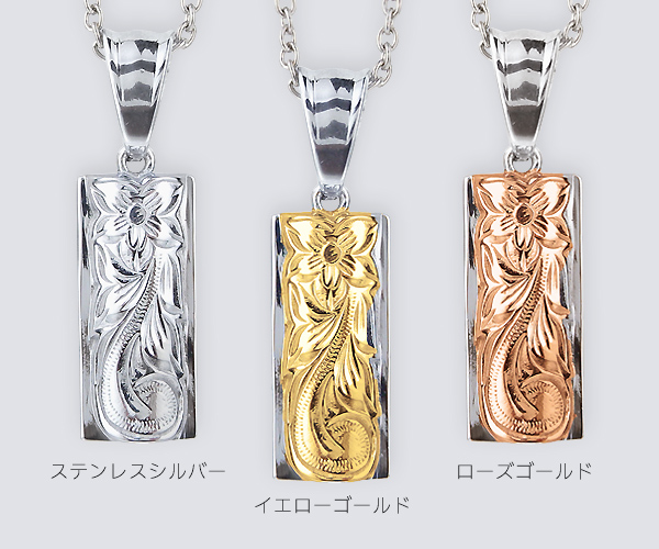 | 商品名 | ハワイアンジュエリー ペアネックレス ステンレス サージカルステンレス ペンダント 刻印無料 アクセサリー ダブルプレート スクロール あずきチェーン付き |