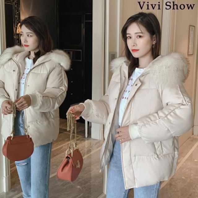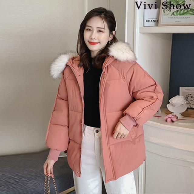 ダウンジャケット レディース 中綿ジャケット 長袖 フード付き ファー付き 無地 ゆったり 人気ファッション 暖かい