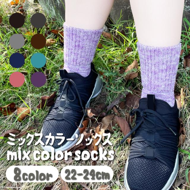 メール便1足まで 日本製 ふかふか パイル 靴下 ミックスカラー 厚地 22〜24cm 杢調 パイル 丈夫 ロークルーソックス カラー ソックス アウトドア fs-4 LegStyle