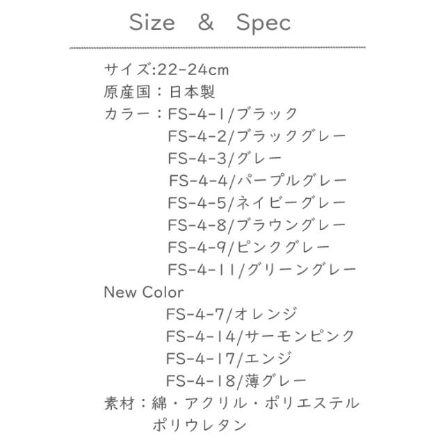 ブラック/FS-4-1 ブラックグレー/FS-4-2 グレー/FS-4-3 パープルグレー/FS-4-4 ネイビーグレー/FS-4-5 ブラウングレー/FS-4-8 ピンクグレー/FS-4-9 グリーングレー/FS-4-11 ------NEW COLOR------ オレンジ/FS-4-7 サーモンピンク/FS-4-14 エンジ/FS-4-17 薄グレー/FS-4-18 |