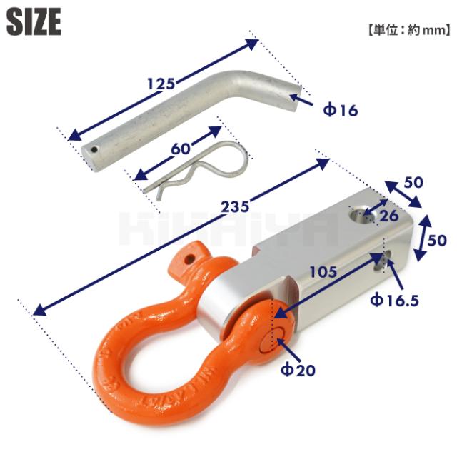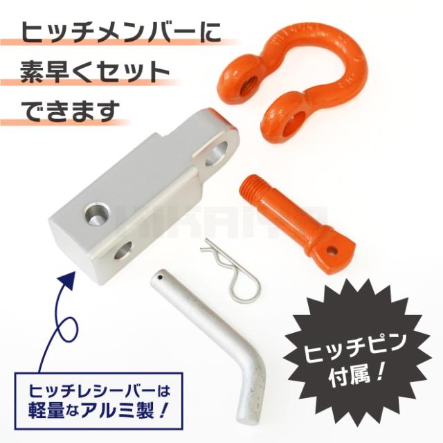 ヒッチメンバー ヒッチレシーバー&バウシャックル ヒッチピン付 アルミ レシーバー 3/4インチ Dリング 2インチ 牽引フック ウインチ KIKAIYA
