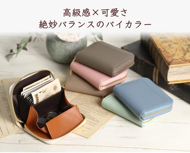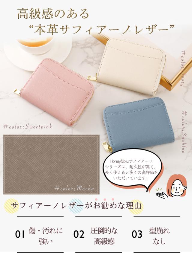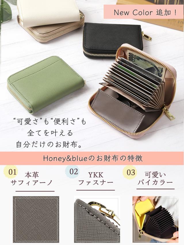 ミニ財布 カードケース レディース お札が折れない 二つ折り財布 本革 スキミング防止 YKKファスナー Honey&blue