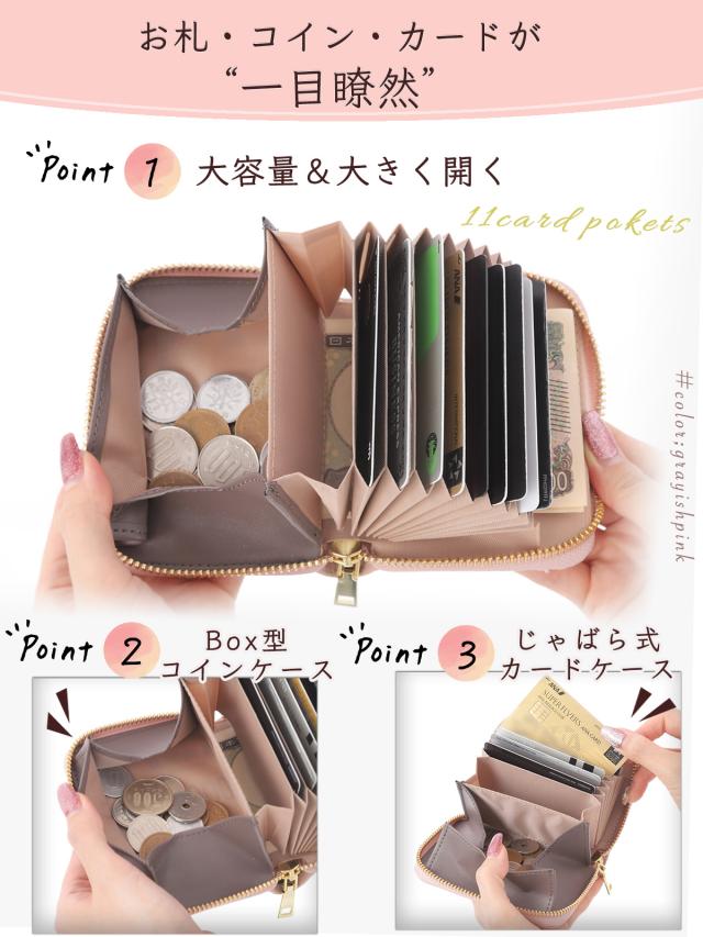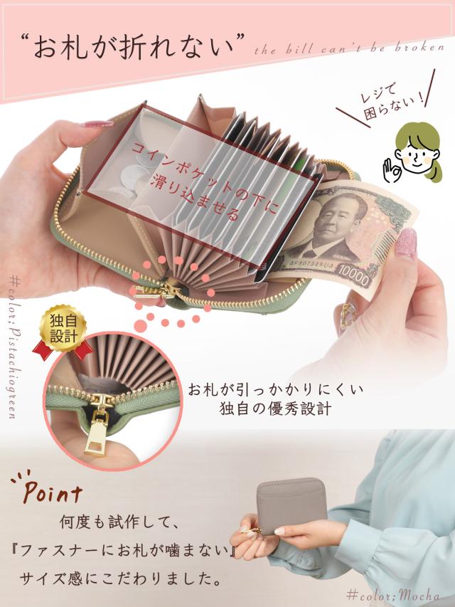 【お札が折れない】◎小銭の下のポケットへお札を滑り込ませる構造にすることで、お札が折れません◎ミニ財布特有の‘お札が折れてしまって会計の時に嫌’な人に是非おすすめです。