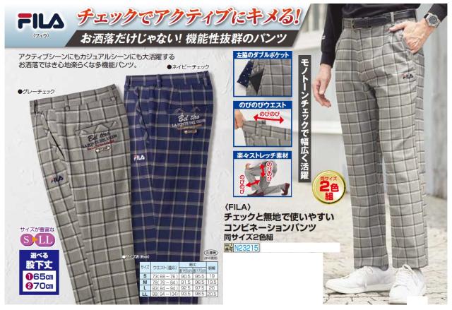 パンツ メンズ シニア 秋冬 FILA チェックと無地で使いやすいコンビネーションパンツ 2色組 選べる股下丈 ボトムス チェック ズボン グレー ネイビー 紳士服 男性 シニアファッション 40代 50代 60代 70代 80代 父の日 お父さん カジュアル 裾上げ済み fri p23215 p28129
