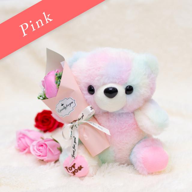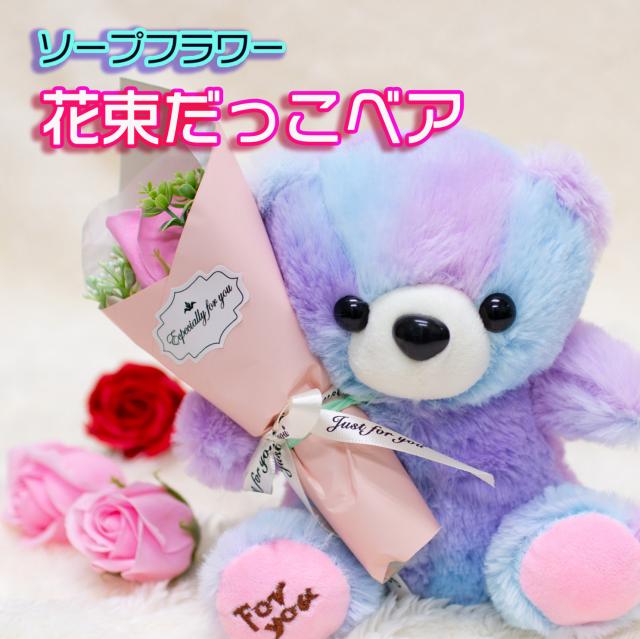 ソープフラワー 花束抱っこ レインボーベア シャボンフラワー ギフト くま 熊 クマ テディベア 風 ぬいぐるみ 花束 花 石鹸 バラ 薔薇 誕生日 母の日 出産祝い 結婚祝い 退職祝い 引っ越し祝い 送別会 お礼 プレゼント FPP-853