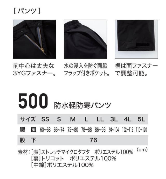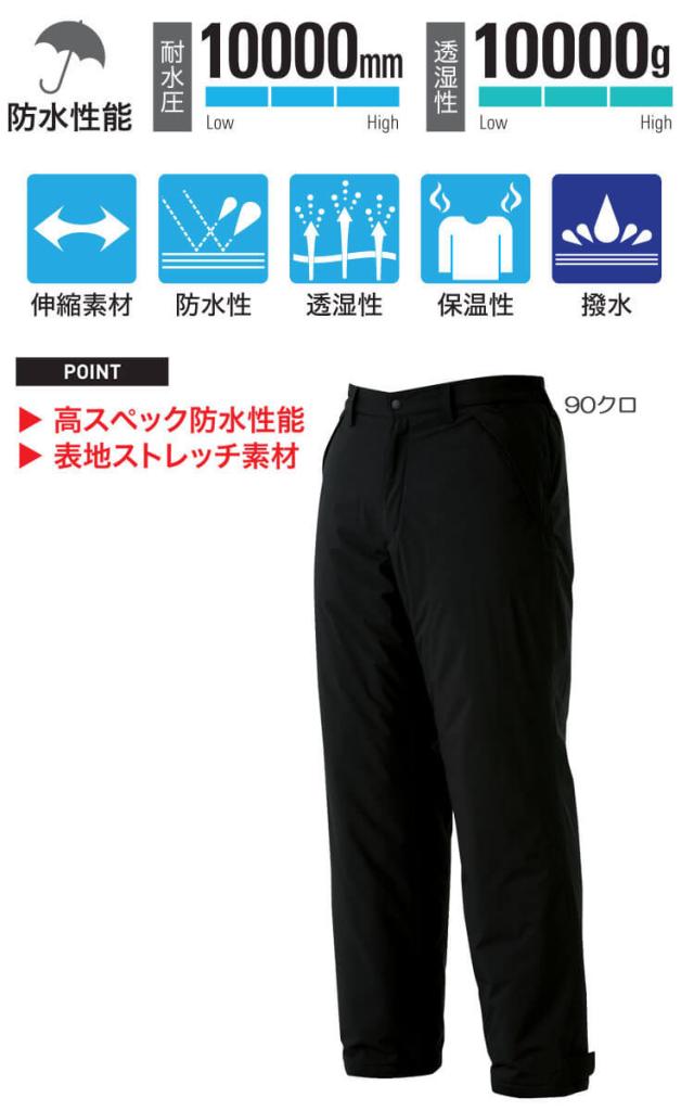 防水軽防寒作業着 作業服 C.ZONE クロスゾーン ストレッチ 防水軽防寒パンツ 500 XEBEC ジーベック エコ素材 サイズSS〜3L