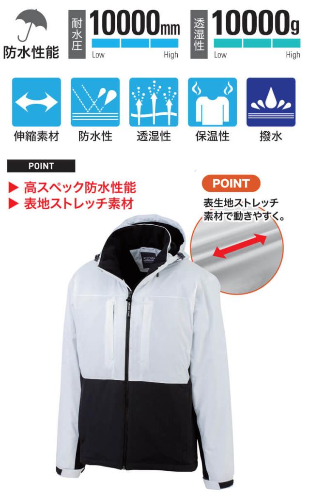 防水軽防寒作業着 作業服 C.ZONE クロスゾーン ストレッチ 防水軽防寒ブルゾン 502 XEBEC ジーベック サイズSS〜3L