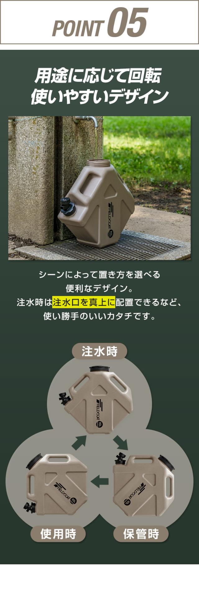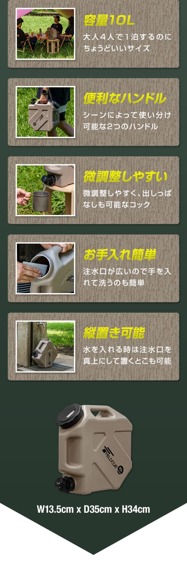FIELDOOR ウォータータンク 10L コック付き 蛇口つき ハードタイプ ウォータージャグ 水 タンク キャンプ アウトドア用品 防災グッズ 災害 非常用 地震 台風 停電 給水用品 給水タンク ウォーターボトル ポリタンク 給水ボトル 1年保証 送料無料