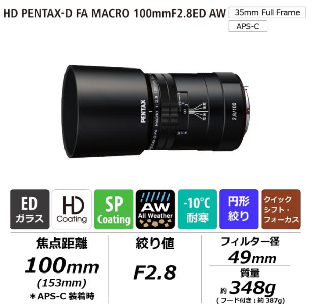 | HD PENTAX-D FA MACRO 100mmF2.8ED AW ブラック スペック情報 | |
