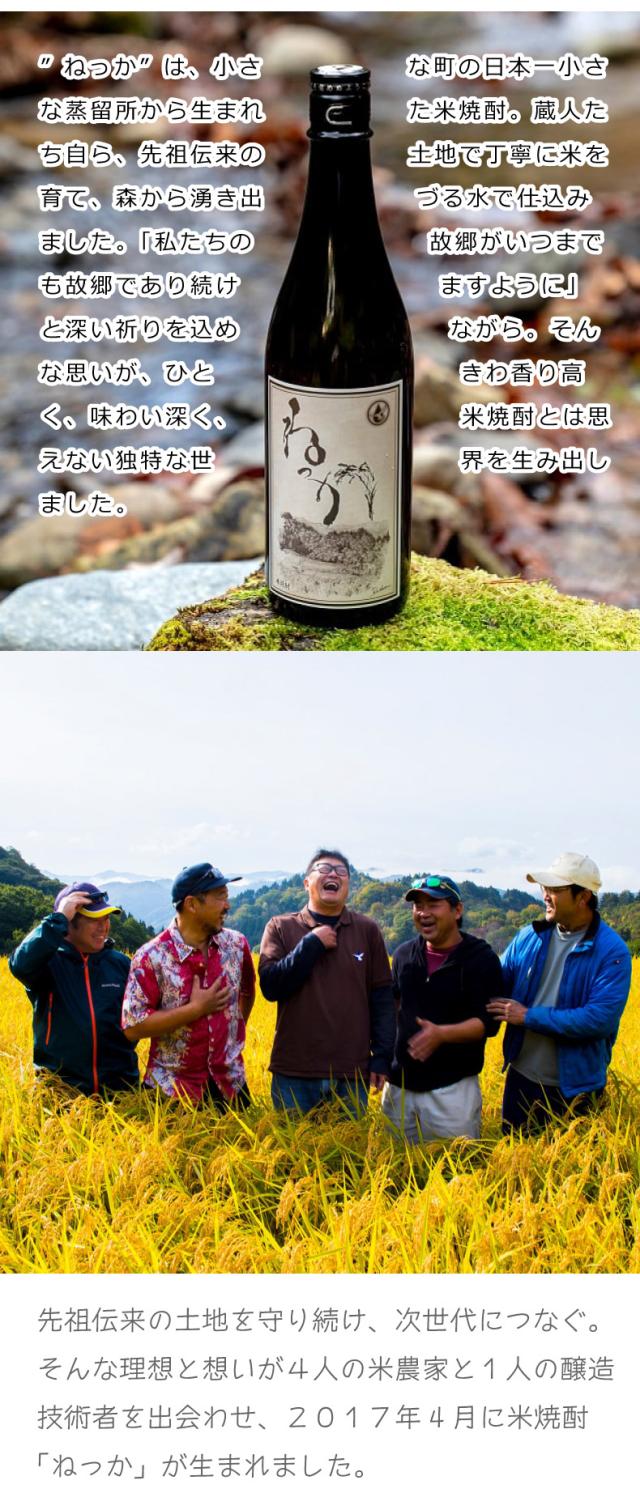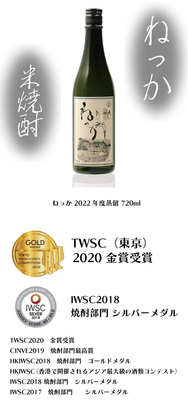 | ”ねっか”は、小さな町の日本一小さな蒸留所から生まれた米焼酎。蔵人たち自ら、先祖伝来の土地で丁寧に米を育て、森から湧き出づる水で仕込みました。「私たちの故郷がいつまでも故郷であり続けますように」と深い祈りを込めながら。そんな思いが、ひときわ香り高く、味わい深く、米焼酎とは思えない独特な世界を生み出しました。 《受賞歴》 |