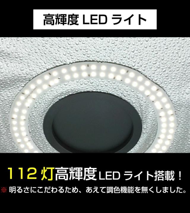 ・LED:灯数:112 / 明るさ:1灯あたり24-26lm / 色温度:5500K / Ra>96
