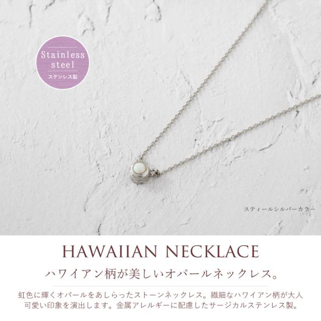 ハワイアンジュエリー ネックレス レディース ステンレス 金属アレルギー対応 オパール 一粒 ハワジュ スティールシルバーカラー gnss246st