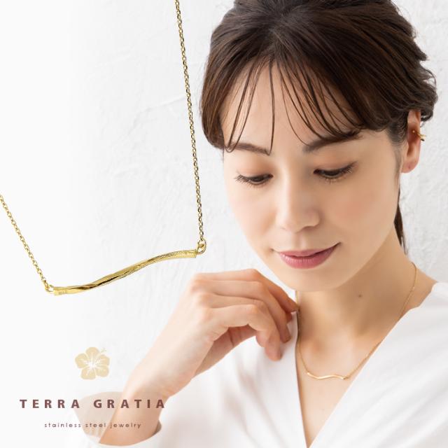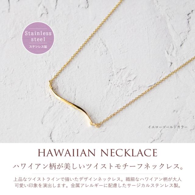 ハワイアン柄が美しいツイストラインネックレス。金属アレルギー対応サージカルステンレス製 記念日 誕生日 クリスマス ホワイトデー 母の日 自分へのご褒美プレゼントにもおすすめです。ハワイアンジュエリー ネックレス レディース ステンレス 金属アレルギー対応 ハワジュ イエローゴールドカラー ツイスト ライン ビーチスタイル 海 シンプルコーデ 大人かわいい 大人カジュアル プレゼント テラグラティア Terra-gratia