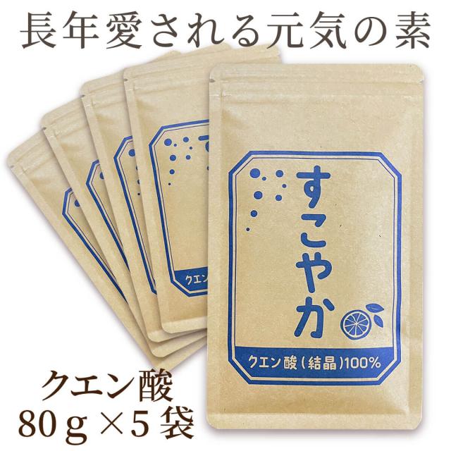 【セット1000円OFF】すこやか クエン酸(結晶)100% 5袋セット(1袋80g)【食用】 サプリメント サプリ【国内製造】健康で元気な毎日の素。