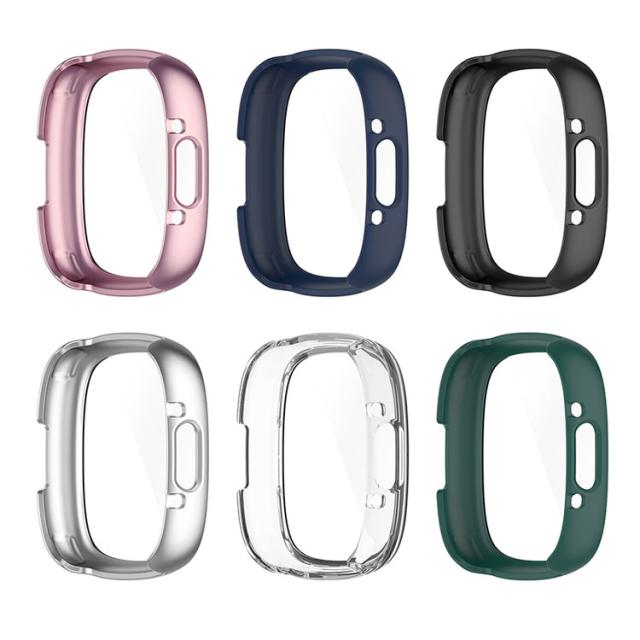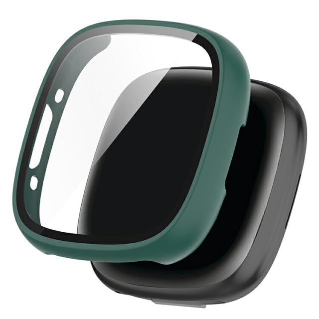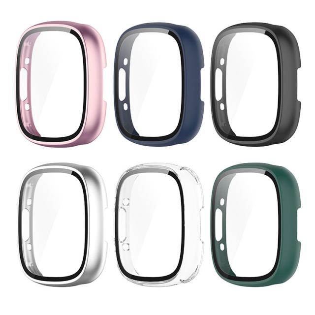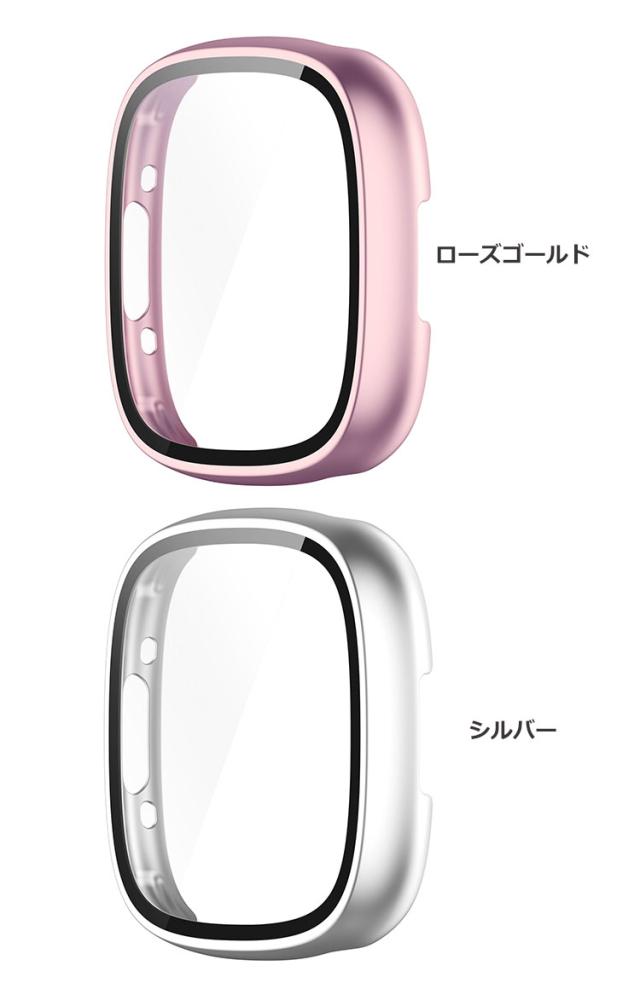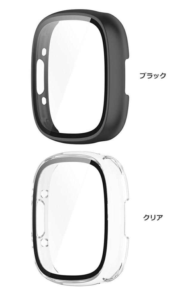 Fitbit Versa4 ケース Fitbit sense2 カバー 強化ガラス (ガラスフィルム) 付き 全面保護 液晶保護ケース フィルム一体 ハードケース 単色/クリア フィットビット ヴァーサ 4/フィットビットセンス2 保護ケース