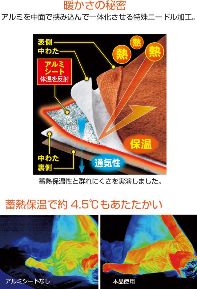 【材質】表地:ポリエステル100% ●中綿:ポリエステル100%(アルミシート入り) ●内側生地:ポリエステル100% ●パイピング部:ポリエステル100%