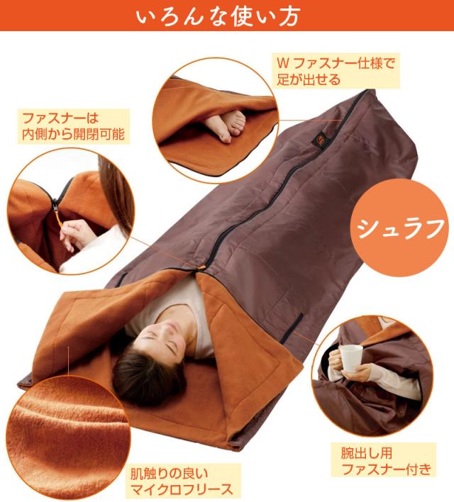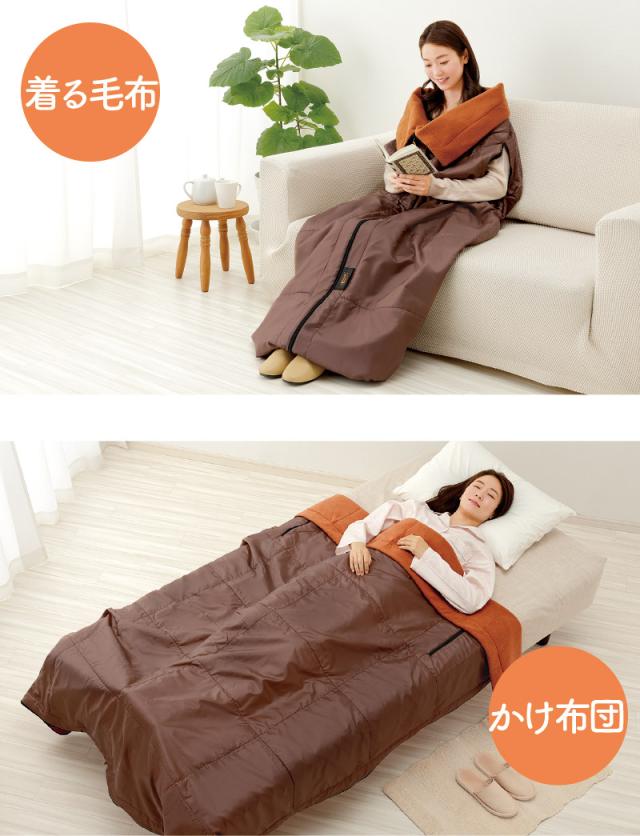 寝袋として、ブランケットとして、着る毛布として、収納したらクッションとして、いろいろ使える!
