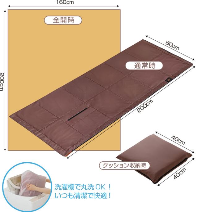 【サイズ】全開時:160×200cm 寝袋時:80×200cm 収納時:40×40cm