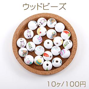 ウッドビーズ 丸玉 16mm 縦穴あり ラウンドウッドビーズ