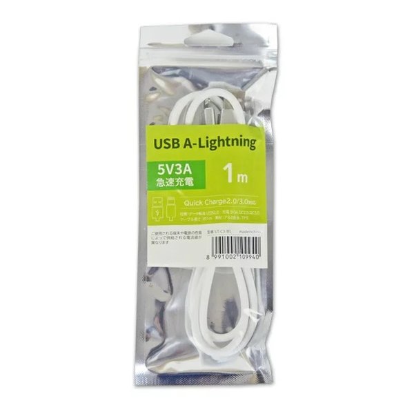 USB A-ライトニング 5V3A急速充電 ケーブル 1m