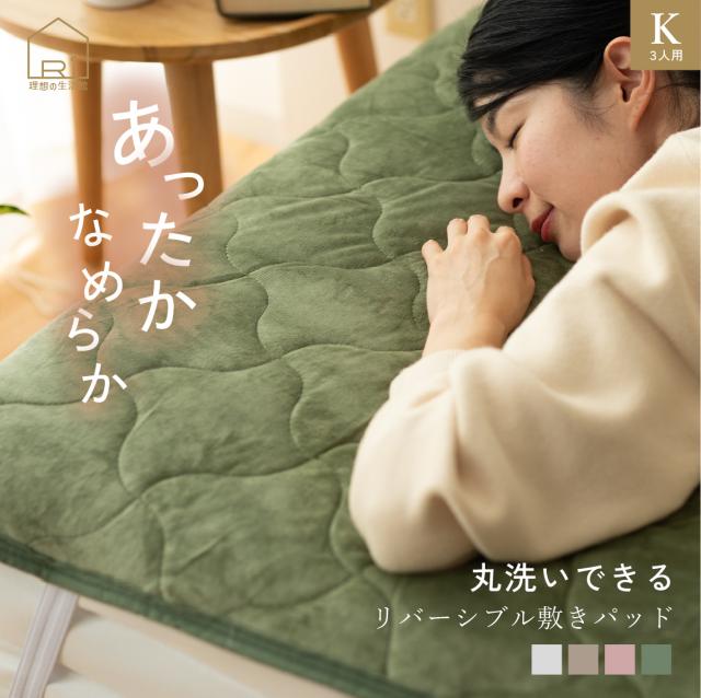 さらさら&あったか 長く使える リバーシブル敷きパッド シングル セミダブル ダブル 3人用(約200×200cm) 4人用(約240×200cm) 5人用(約280×200cm) ピロパッド シングル2枚セット ライトグレー モスグリーン モーブピンク モカベージュ