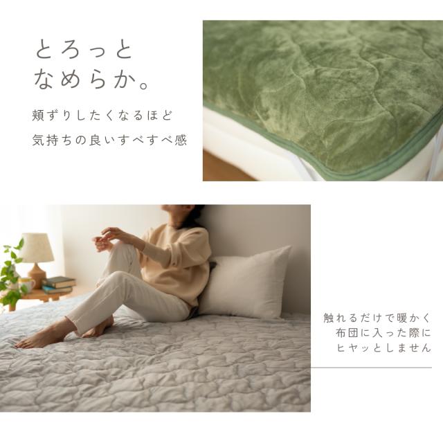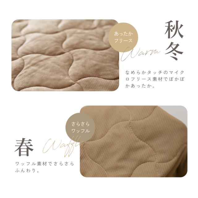 滑らかな微起毛のマイクロフリース生地とさらさらのメッシュ生地を使ったリバーシブル素材の敷きパッド。