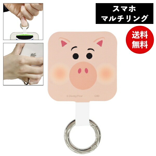 メール便送料無料 ディズニー ピクサーキャラクター マルチリングプラストイストーリー ハム DNG-31HM グルマンディーズ スマートフォン用ホールドリング スマホリング ケースに挟む 貼らない 吊り下げ カラビナ スマホリング シンプル 落下防止 かわいい