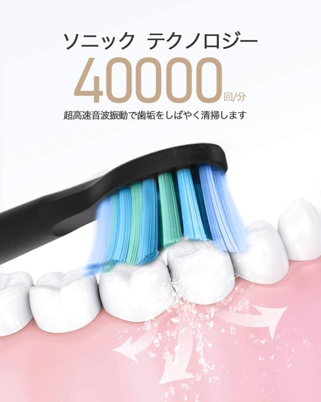 【圧倒的な除去力】電動歯ブラシの毛先が毎分40000回の微振動で歯の表面に付着した歯垢、汚れを強力に清掃します。