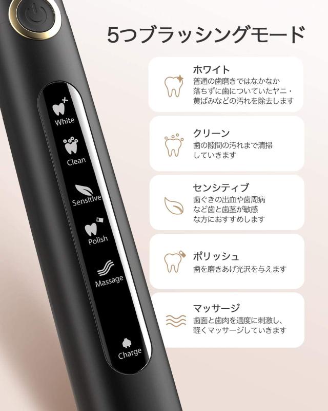 【5つブラッシングモード】歯の状態に合わせたケアができるため、電動歯ブラシは5つモードの切り替え機能を搭載しました。