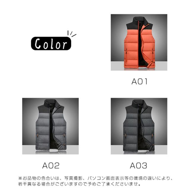中綿ベスト メンズ ダウンベスト 立ち襟ベスト 軽量 ジャケット ダウンジャケット アウター チョッキ 袖なし 秋冬 アウター ウ
