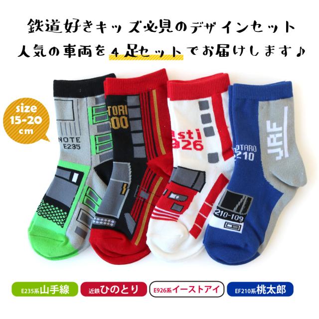 子供 靴下 鉄道 電車 ソックス クルー丈 4足セット15-20cm 山手線イーストアイ 桃太郎 ひのとり 消臭 抗菌 鉄下 キッズ ギフト