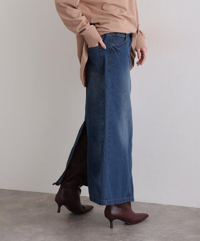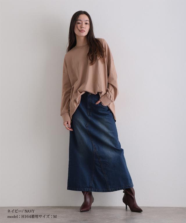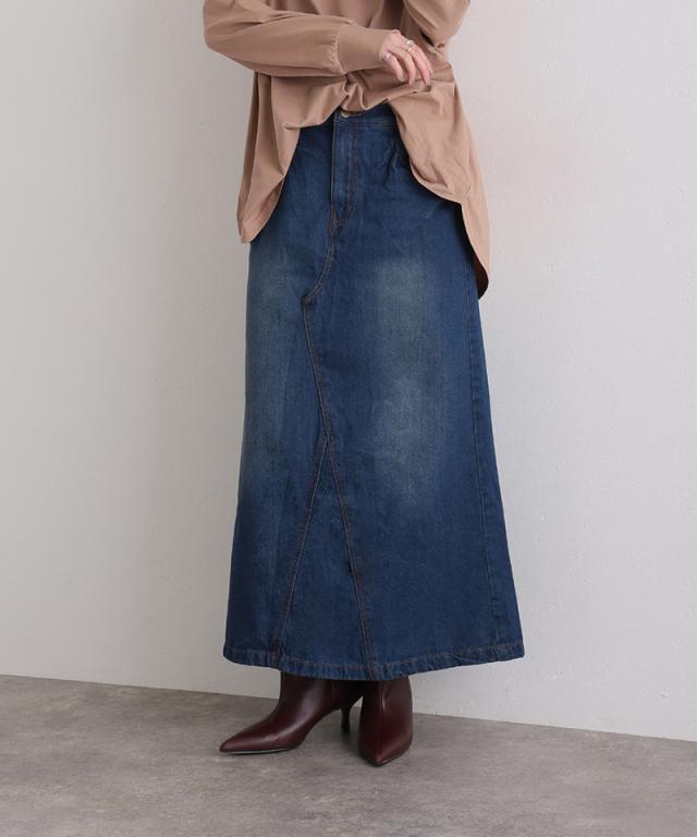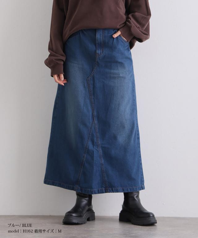 セミタイトデニムマキシスカート【430222026】20代・30代・40代・50代ボトムス・レディース・カジュアル・伸びる・ストレッチ・ストレート・ウエスト・ゆったり・ハーフ・ワイド・シンプル・美脚・美シルエット・薄手・厚手・無地・刺繍・可愛い・伸縮性・キレイめ・新作・レース・上品・セットアップ・体型カバー・スタイルアップ・小さいサイズ・3Lや4L・即日発送・送料無料・オフィス・ワーク・オールシーズン・デイリー・普段着・オケージョン・セミフォーマル・婚活・顔合わせ・同窓会・お呼ばれ・食事会・謝恩会・親族・七五三・お宮参り・冠婚葬祭・弔事・女子会・デート・入学式・卒業式・入園式・ママ