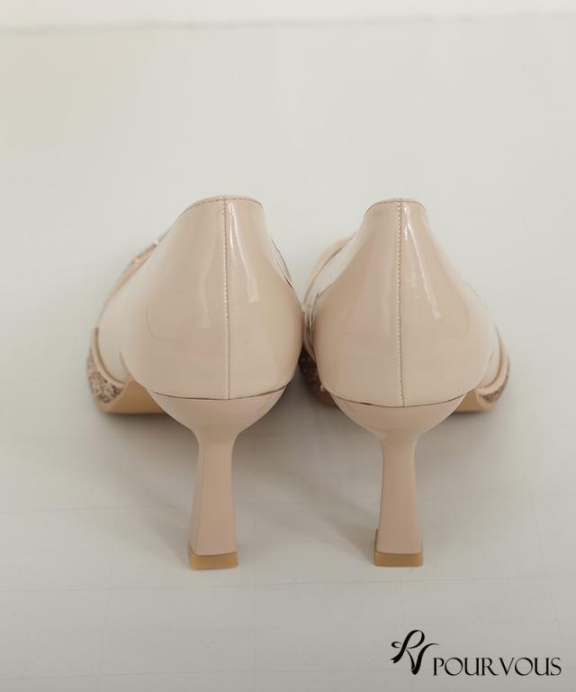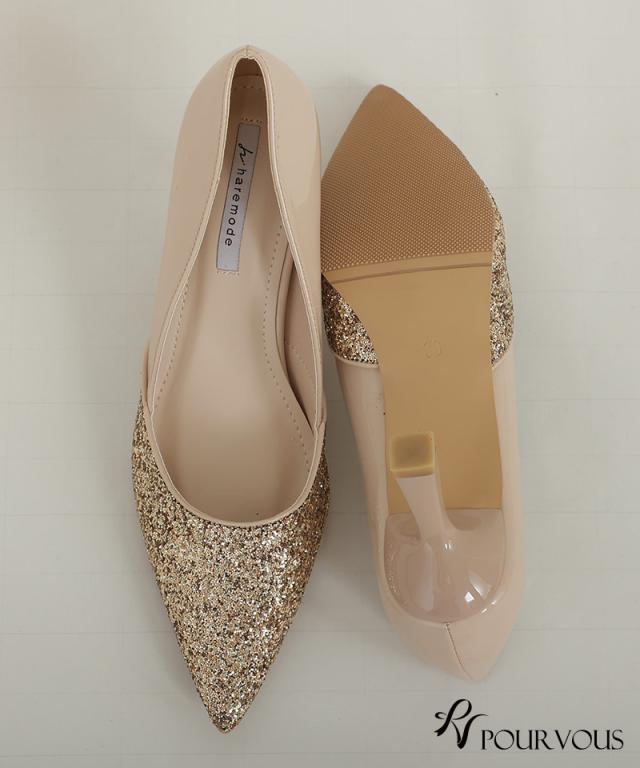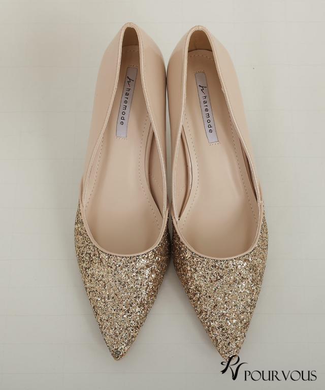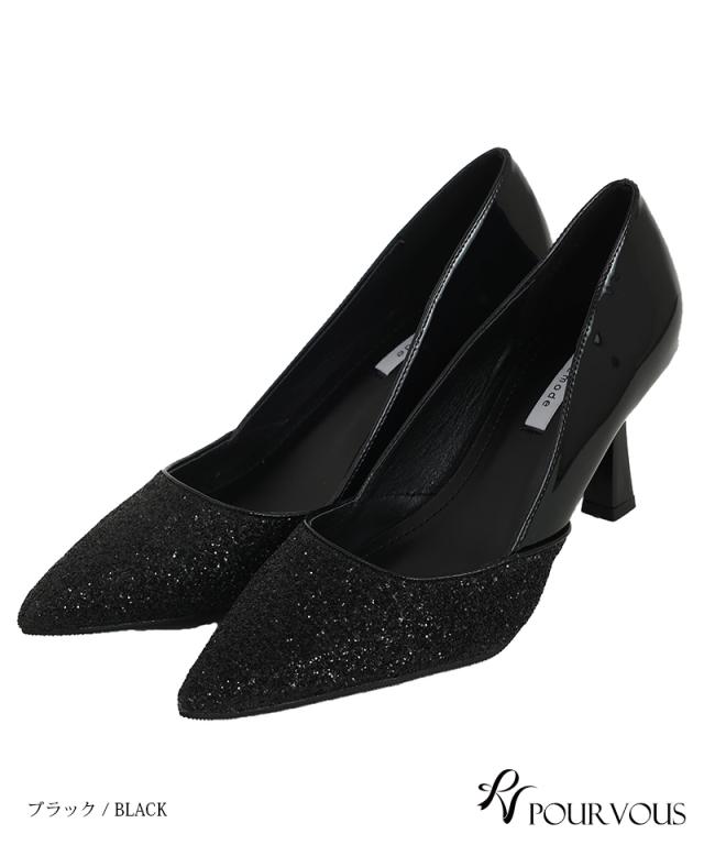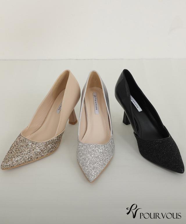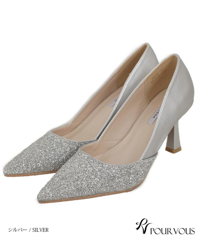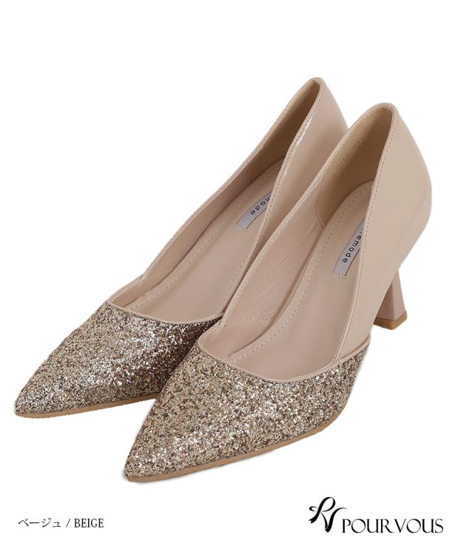 グリッター切替ルイヒールパンプス【329221922】20代・30代・40代・50代パーティーシューズ・痛くないパンプス・ローヒール・太ヒール・ピンヒール・ヒール・レース・ラメ・デザインヒール・フォーマル・大きいサイズなど・即日発送・送料無料・結婚式・婚活・披露宴・顔合わせ・二次会・同窓会・お呼ばれ・食事会・謝恩会・親族・七五三・お宮参り・冠婚葬祭・弔事・女子会・デート・入学式・卒業式・入園式・卒園式・ママ・マタニティー・セレモニー・セレブ・パーティー