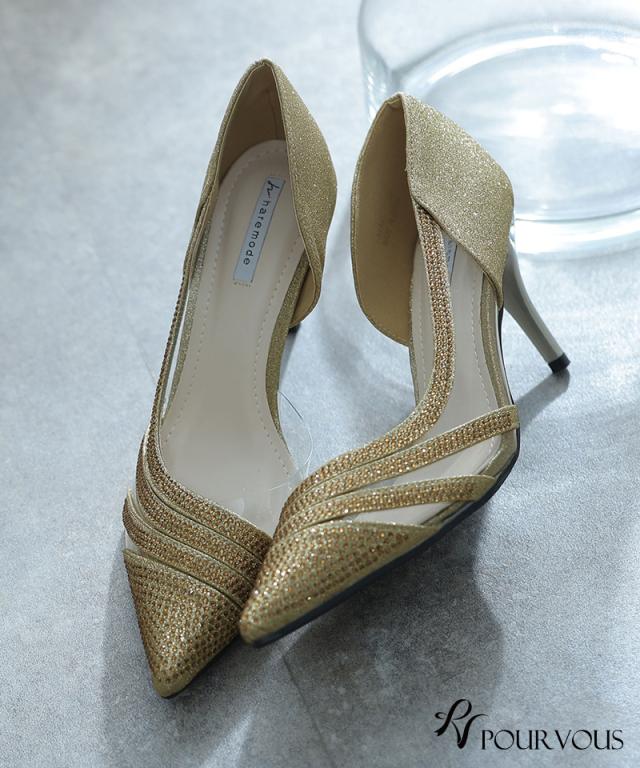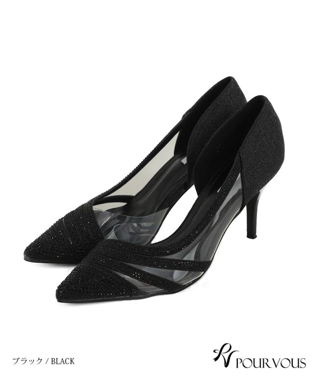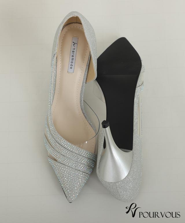ラインストーンシースルーパンプス【330221922】20代・30代・40代・50代パーティーシューズ・痛くないパンプス・ローヒール・太ヒール・ピンヒール・ヒール・レース・ラメ・デザインヒール・フォーマル・大きいサイズなど・即日発送・送料無料・結婚式・婚活・披露宴・顔合わせ・二次会・同窓会・お呼ばれ・食事会・謝恩会・親族・七五三・お宮参り・冠婚葬祭・弔事・女子会・デート・入学式・卒業式・入園式・卒園式・ママ・マタニティー・セレモニー・セレブ・パーティー
