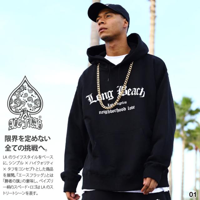 ACEFLAG パーカー ブランド スケボー 長袖 トップス スウェット 裏パイル メンズ 黒/グレー 大きいサイズ エースフラッグ ロングビーチ b系 ヒップホップ ファッション ダンス ストリート系 服 AF-TL-PA-021