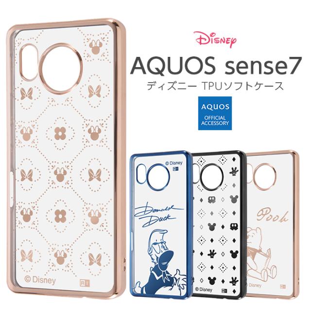 AQUOSsense7 ケース ディズニー クリア メタリック AQUOS sense7 カバー ソフトケース ハードケース スマホケース ドナルド ミッキー ミニー プーさん アクオスセンス アクオスセンス7 シンプル 可愛い キャラクター 韓国