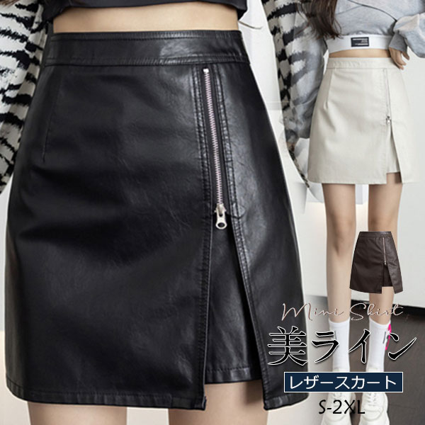 ポイント超超祭 セール中 スカート レディース レザースカート PU ミニスカート Aライン タイト フェイクレザー 革スカート ボトムス 体型カバー 大きいサイズ 通勤