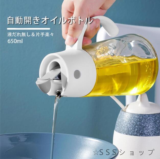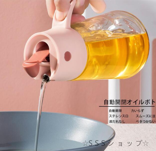 オイルポット 自動開閉 調味料ボトル 液だれしない 漏れ防止 密封設計 オイル差し オイル入れ 調味料入れ PP ガラス 安定放置