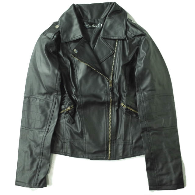 新品 no brand ノーブランド フェイクレザー ダブルライダースジャケット L ブラック アウター