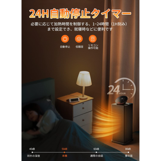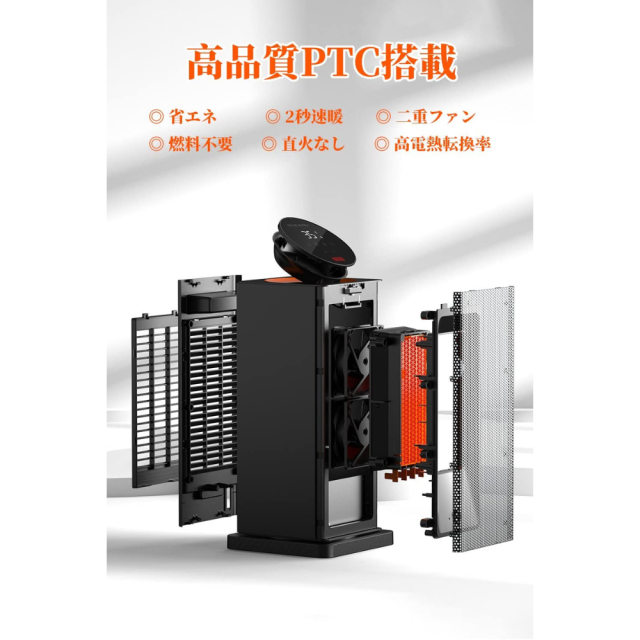 【安全面よい・寒暖差を軽減するヒートショック対策・高齢者にも安心使用!】 温度差の大きさによるヒートショックの好発時期に、冬の脱衣場に本ヒーターを置いて、暖かいリビングから冷たい脱衣所に移動した際の温度差を少なくすることができます。本部屋ヒーターは多方面の安全保護装置を設置され、お年寄りにも安心してご利用いただけます。