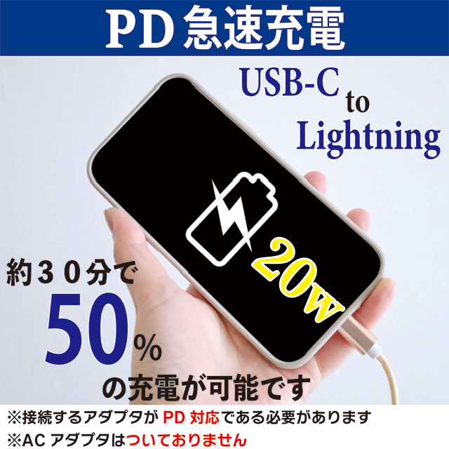 ※急速充電にはUSB-C 20w対応アダプタが必要となります